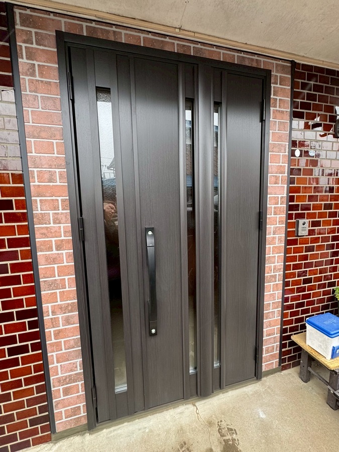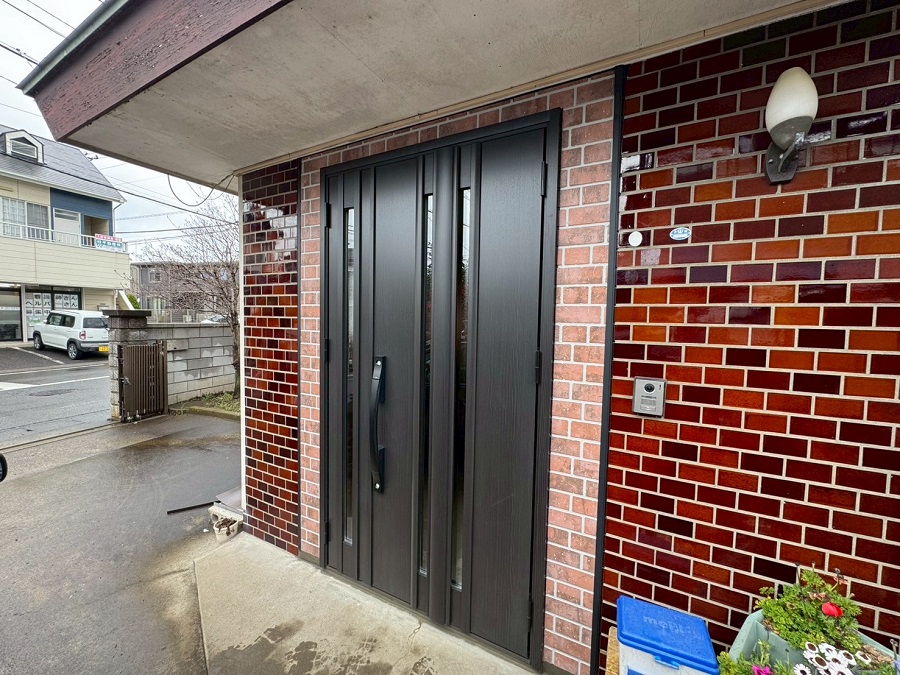 今回は玄関ドアの交換工事をやらせていただきました。引き戸タイプの玄関から親子ドアタイプへ変更しました。引き戸よりも親子ドアの方が開口が大きくなる分、広いスペースが確保できます。「玄関は家の顔」なんて言われますが、お家の印象がガラッと変わったかと思います。工事で少しでも過ごしやすくなっていただければ幸いです。